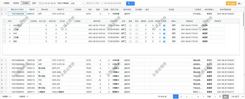 可以手动编制,也可以从工艺模板中导入、还可以从其它零件复制,可以一次编辑一个零件,也可以一次编辑多个零件。工艺可分步审核下发。